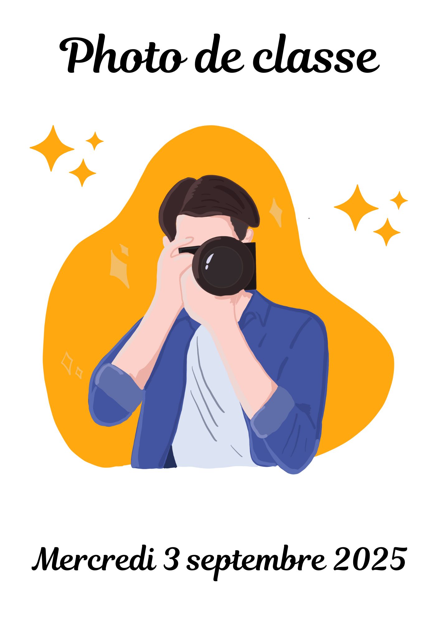Pour la rentrée 2025-2026, la photo de classe se déroulera le mercredi 3 septembre 2025 au matin. Les classes pourront défiler les unes après les autres pour réaliser leurs clichés classiques et « rigolos ».